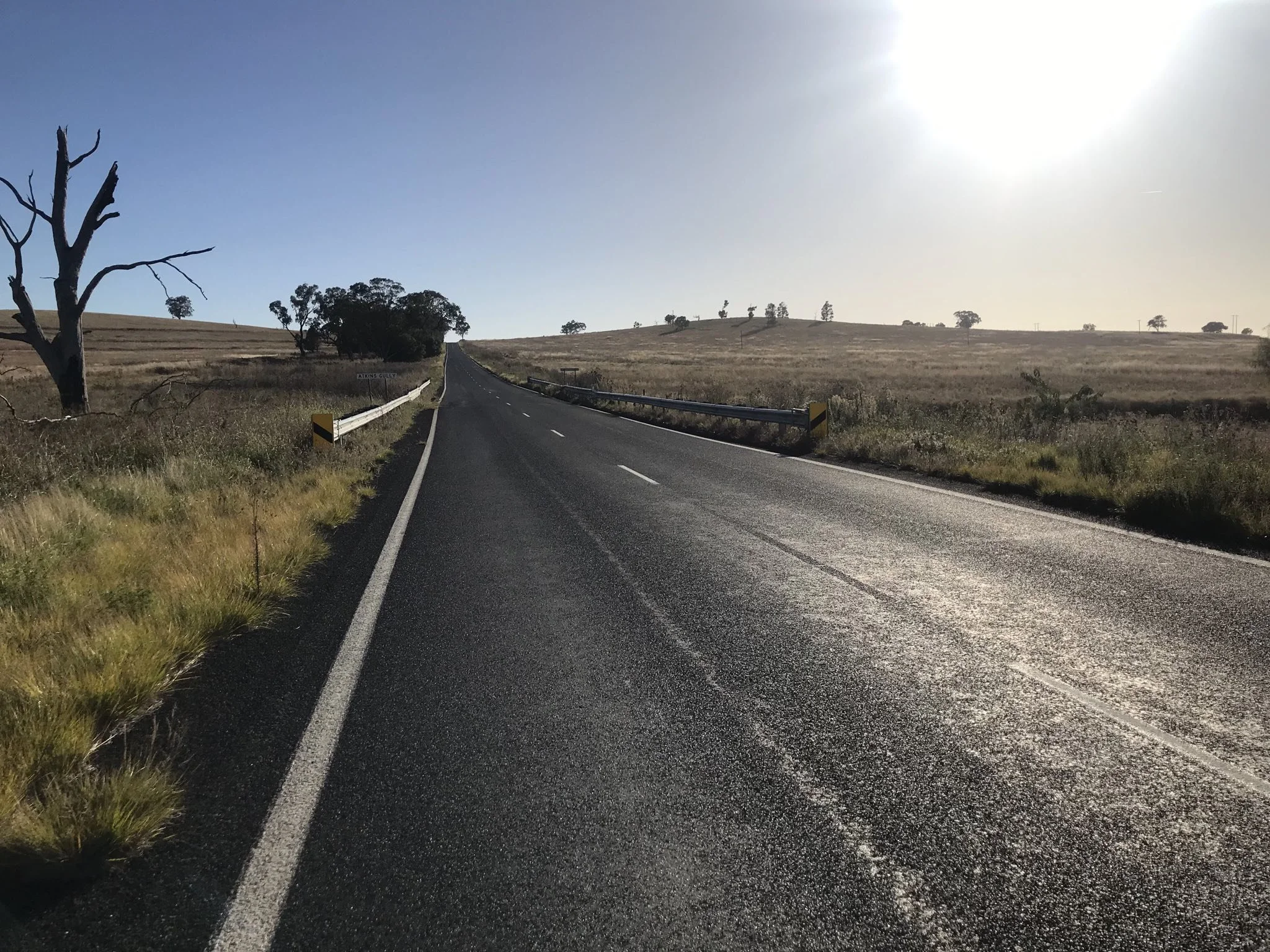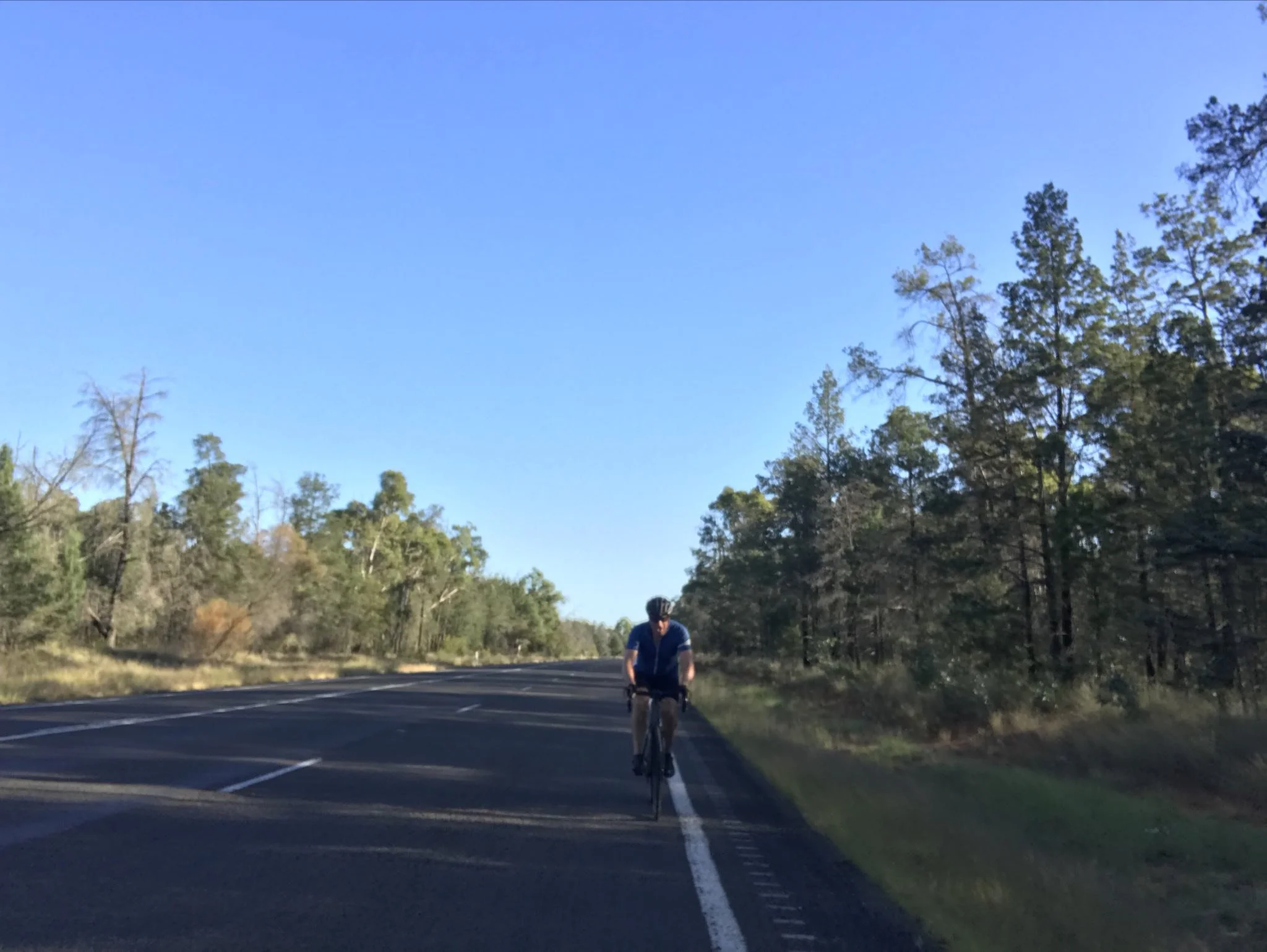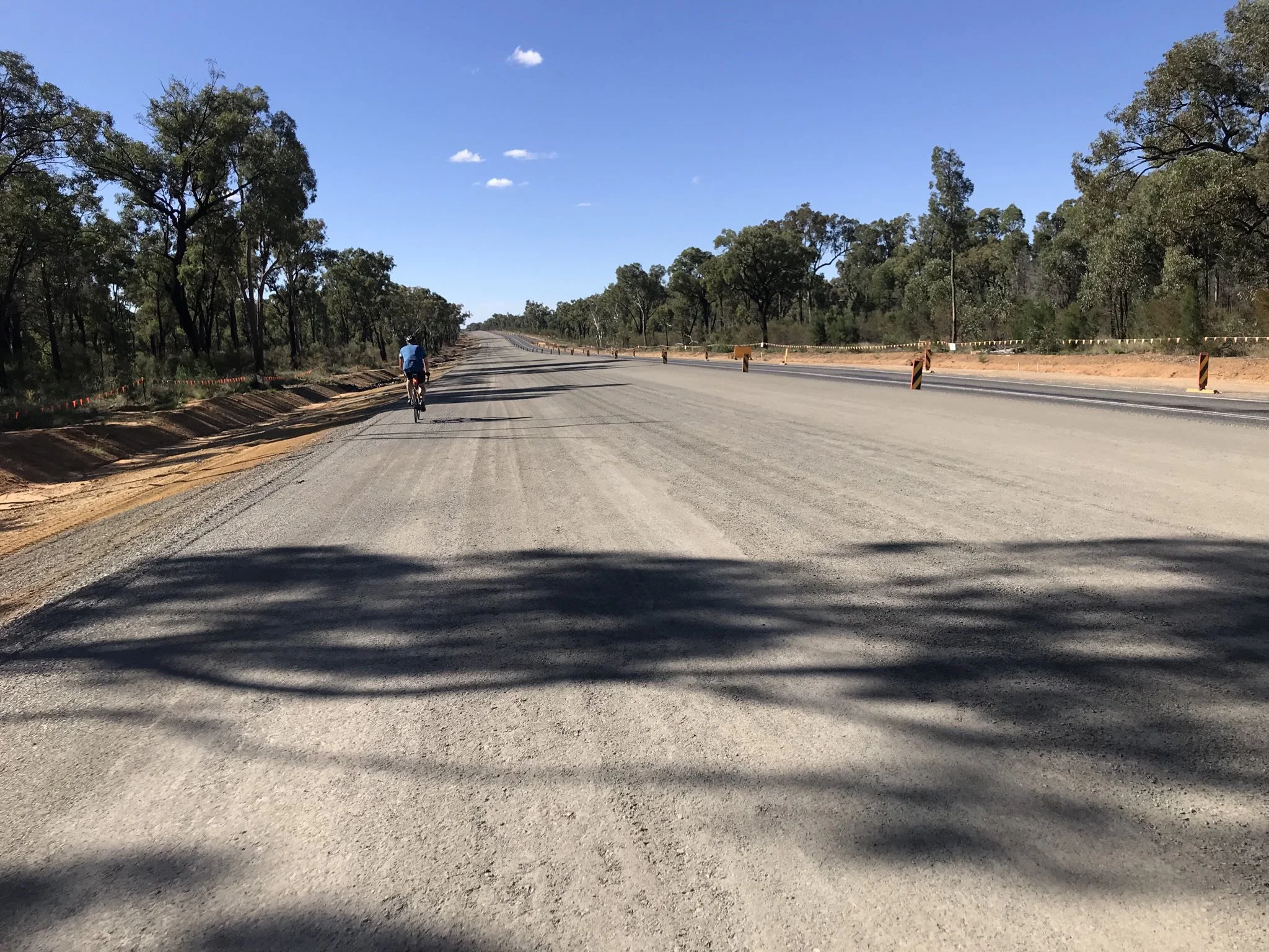 Highlights today we’re crossing a ford (about 25mm deep), nearly getting run off the road by a train of roadies in convoy (at a point where there was no shoulder to speak of) and riding on a yet to be sealed new road which was smoother than the actual road. Oh and one other highlight was the 100k of mainly flat ride into Narrabri.