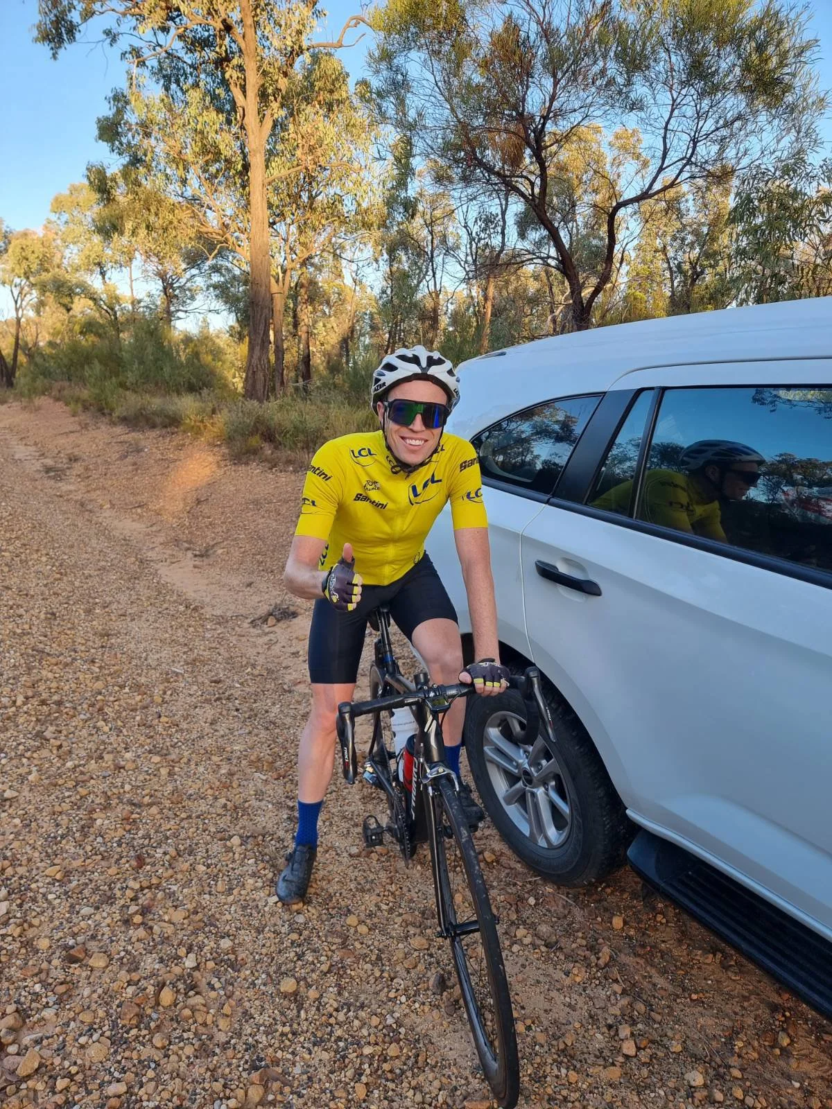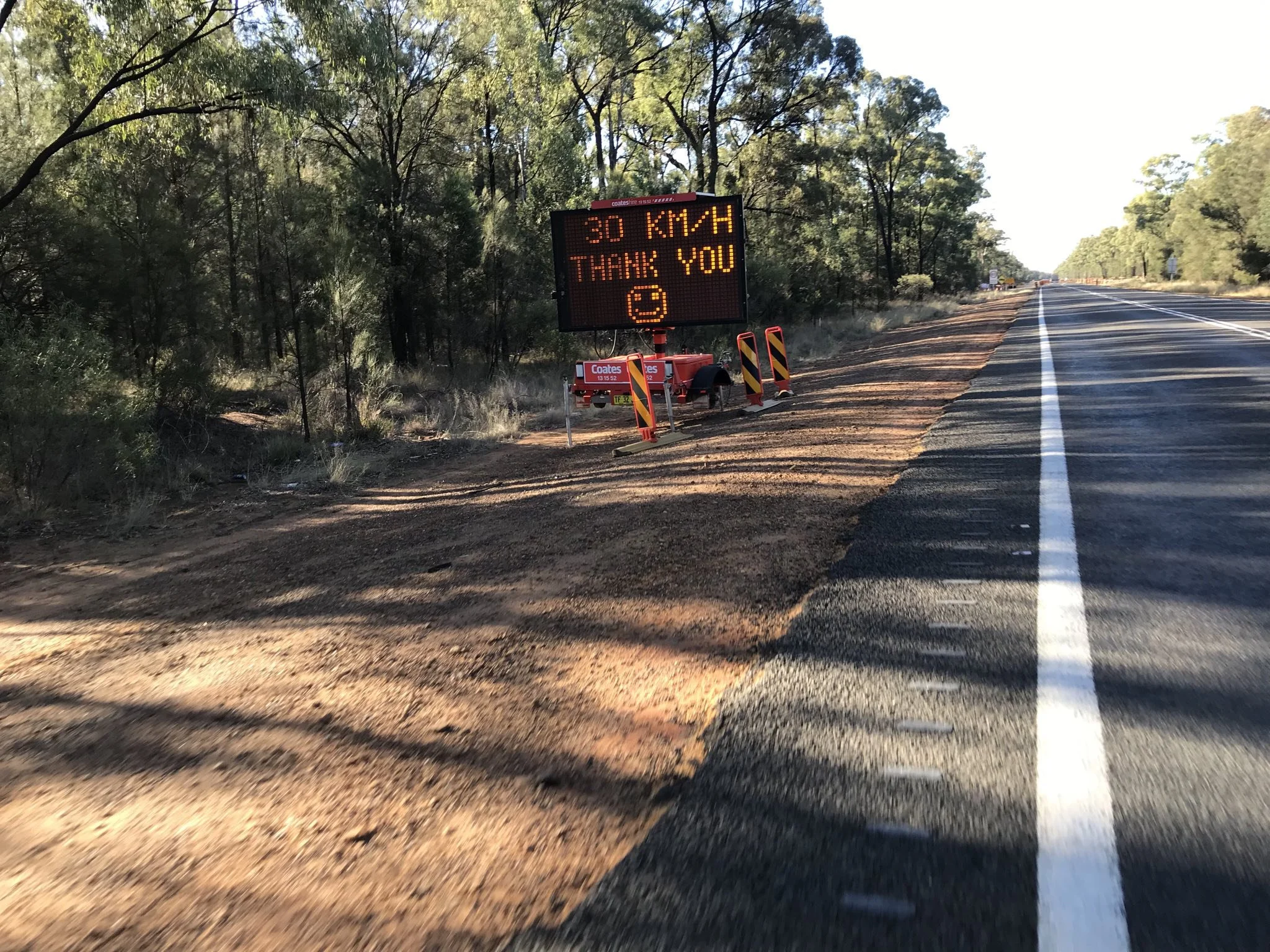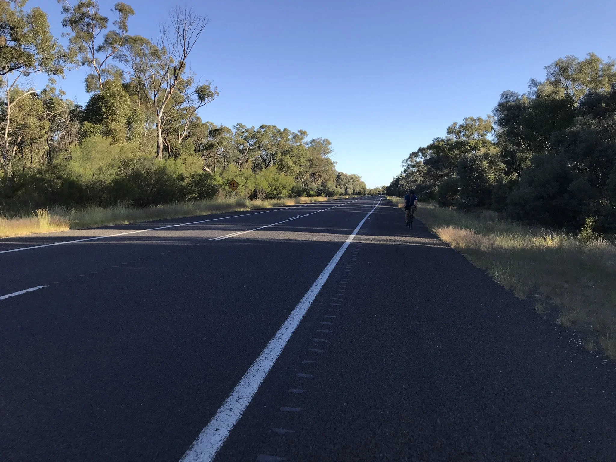 Highlights today we’re crossing a ford (about 25mm deep), nearly getting run off the road by a train of roadies in convoy (at a point where there was no shoulder to speak of) and riding on a yet to be sealed new road which was smoother than the actual road. Oh and one other highlight was the 100k of mainly flat ride into Narrabri.