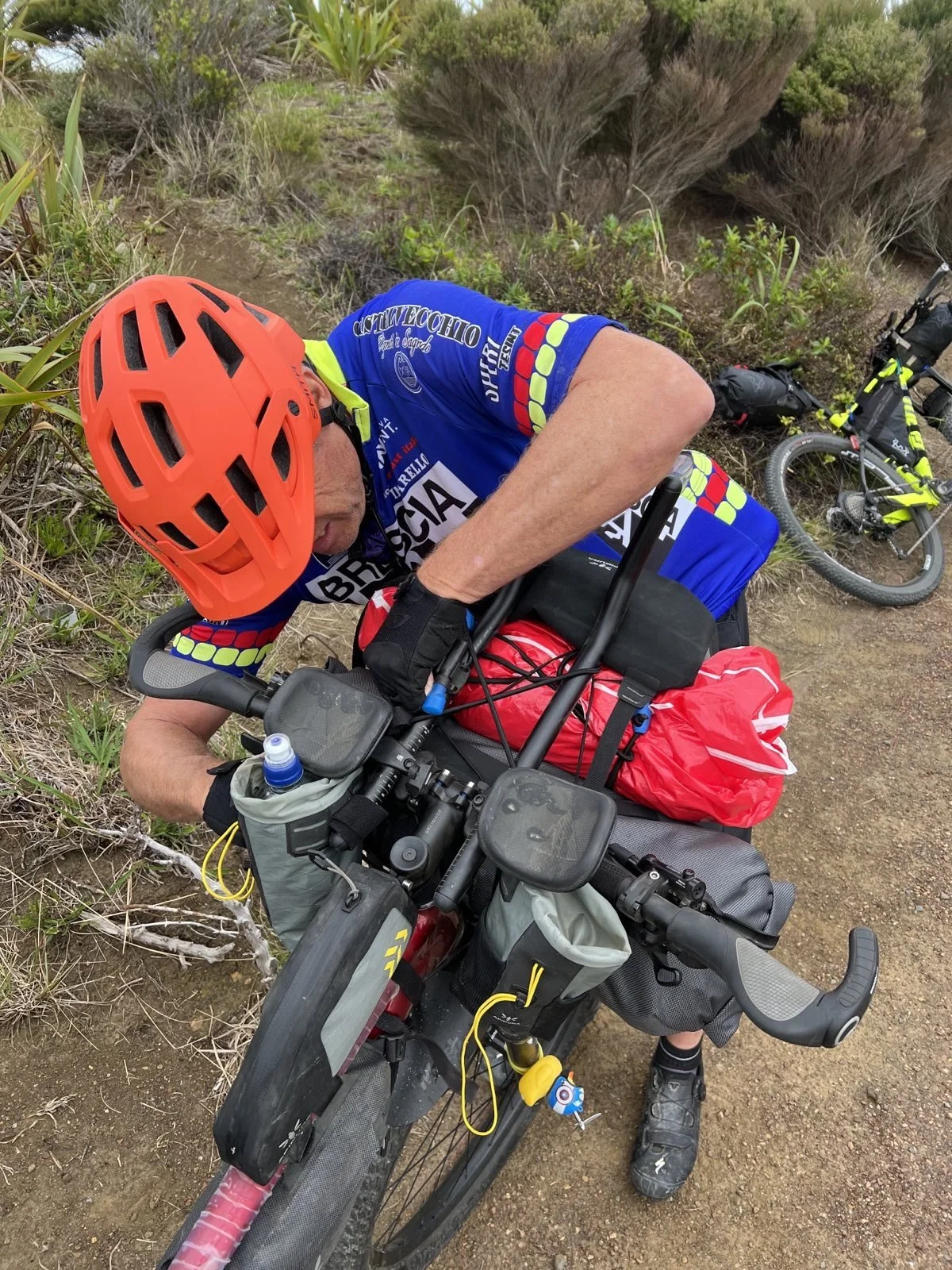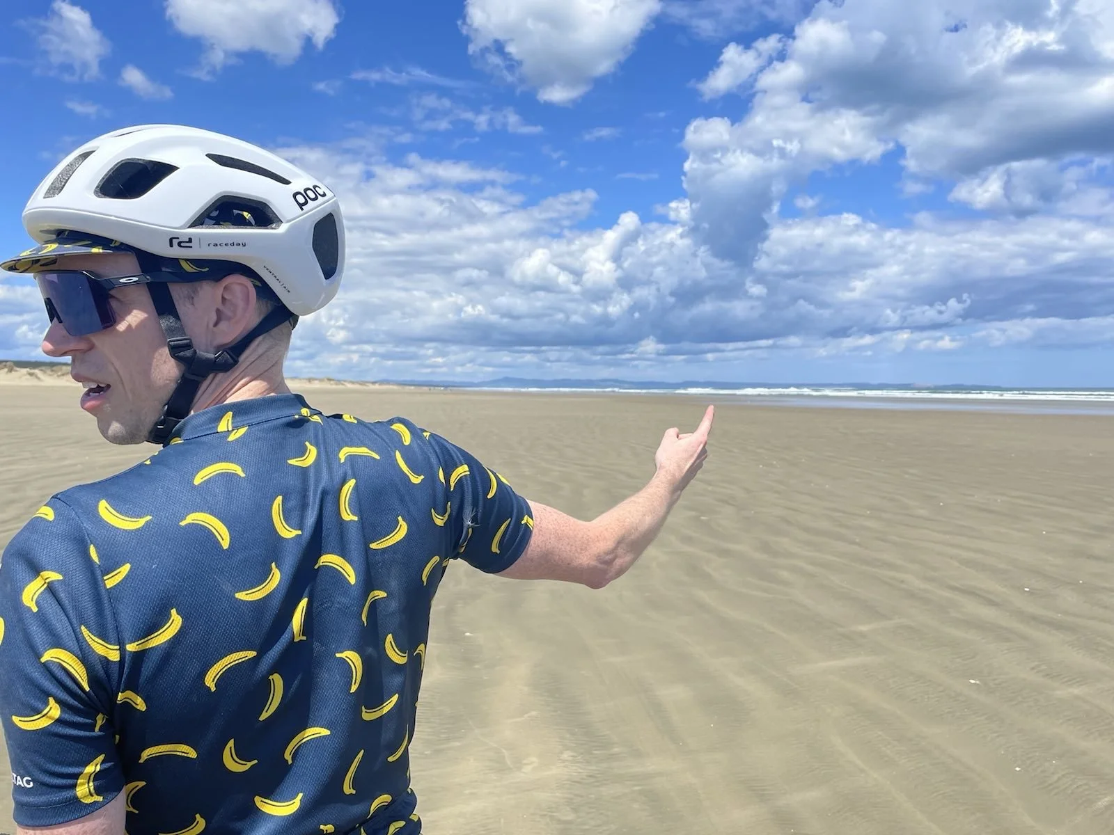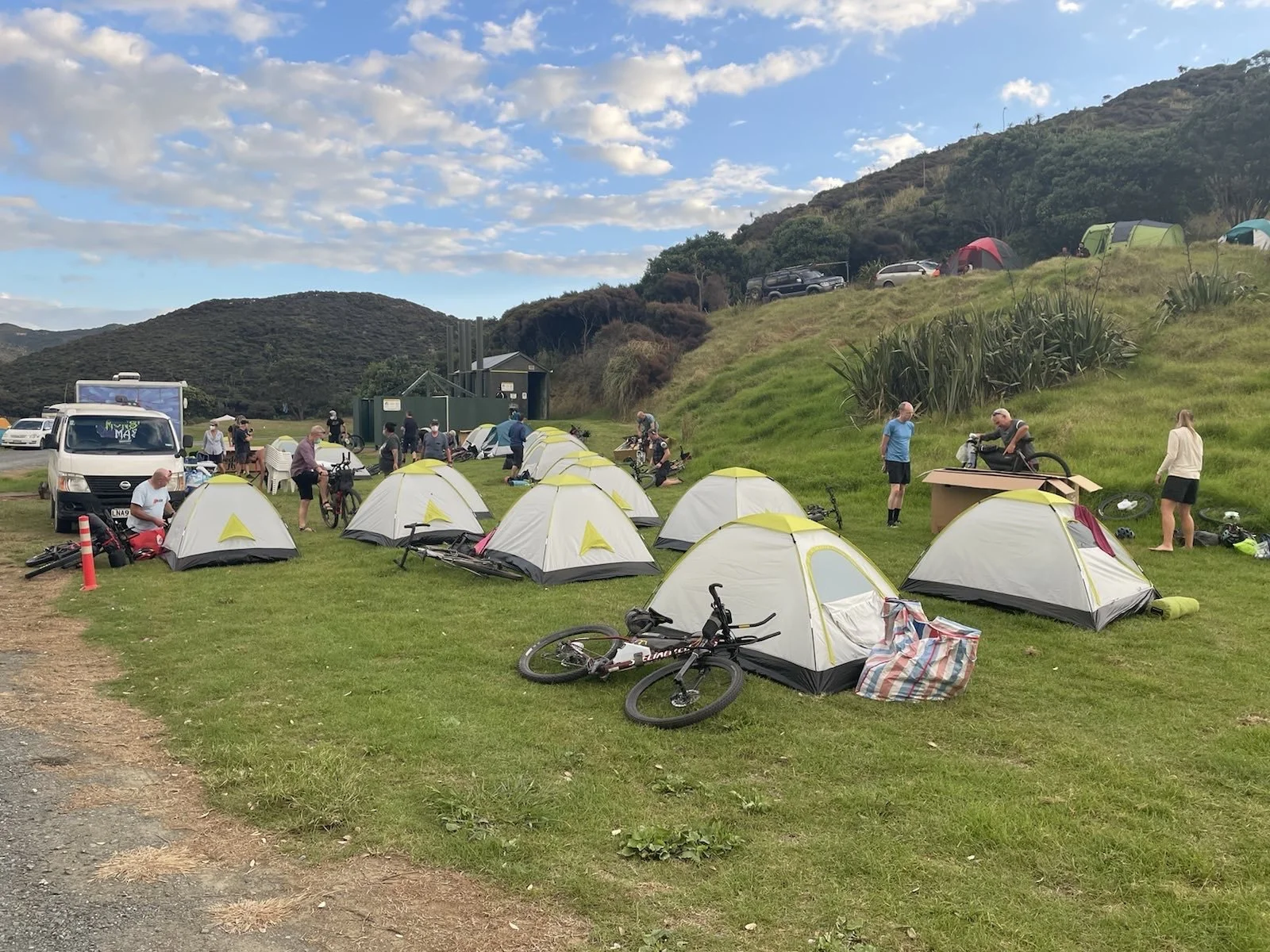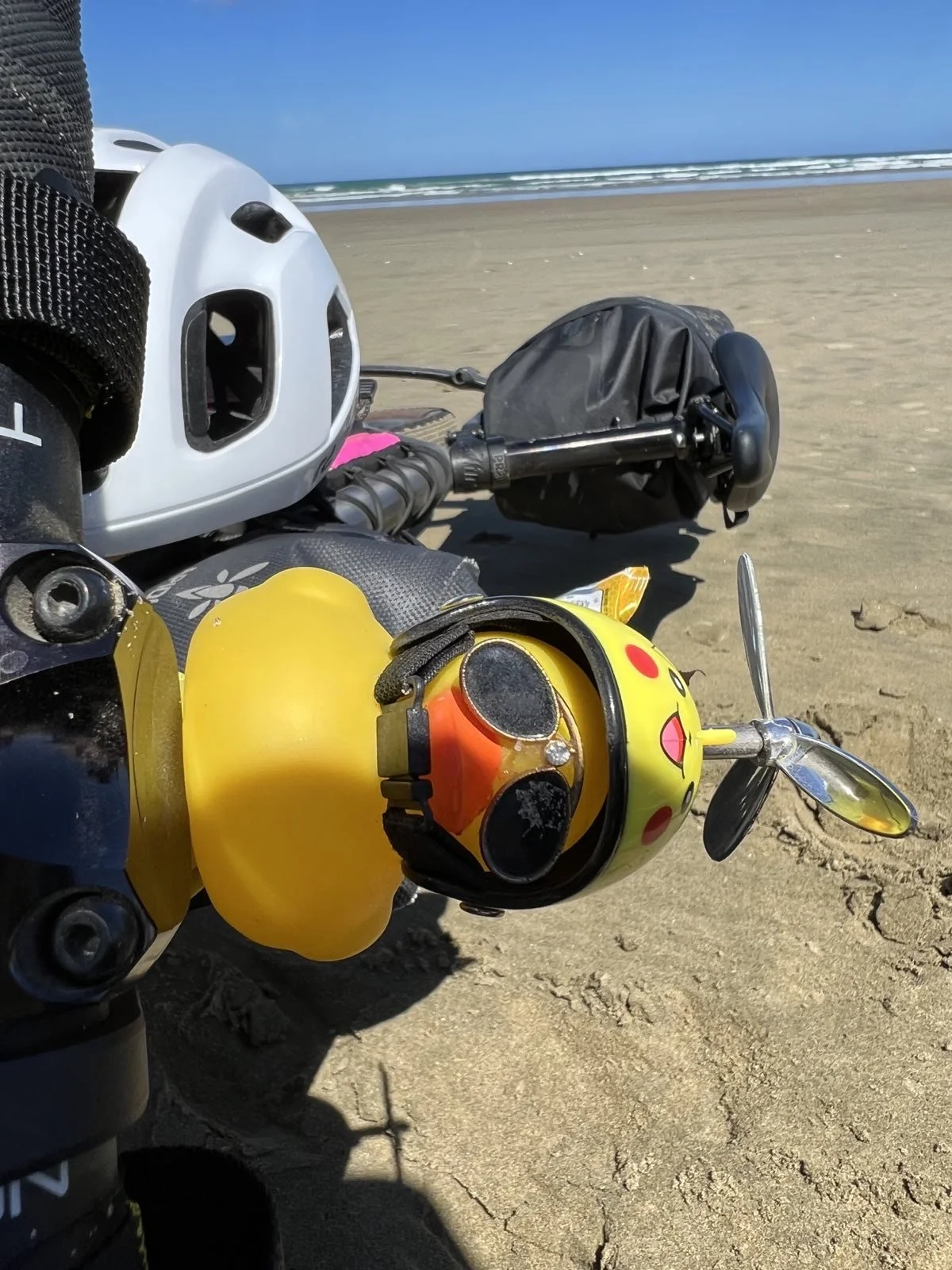 Team We’re Bluffin’! off to a flying start which was soon given a reality check upon hitting the beach. Ahead was an 84k expanse of flat but gruelling sand which coated our bikes and the drive train making for heavy going. Lesson of today was “take more food!” Unfortunately we relied on the shuttle service from yesterday to provide the lunch, but there’s lunch for kids and food for mental cyclists! Plenty of photo opportunities as you can see. 7 hours after the grand depart we arrived in Ahipara campsite. Now for dinner 🥘 and an early night. Thanks go to Phil who we met on the beach who gave us water and a banana.