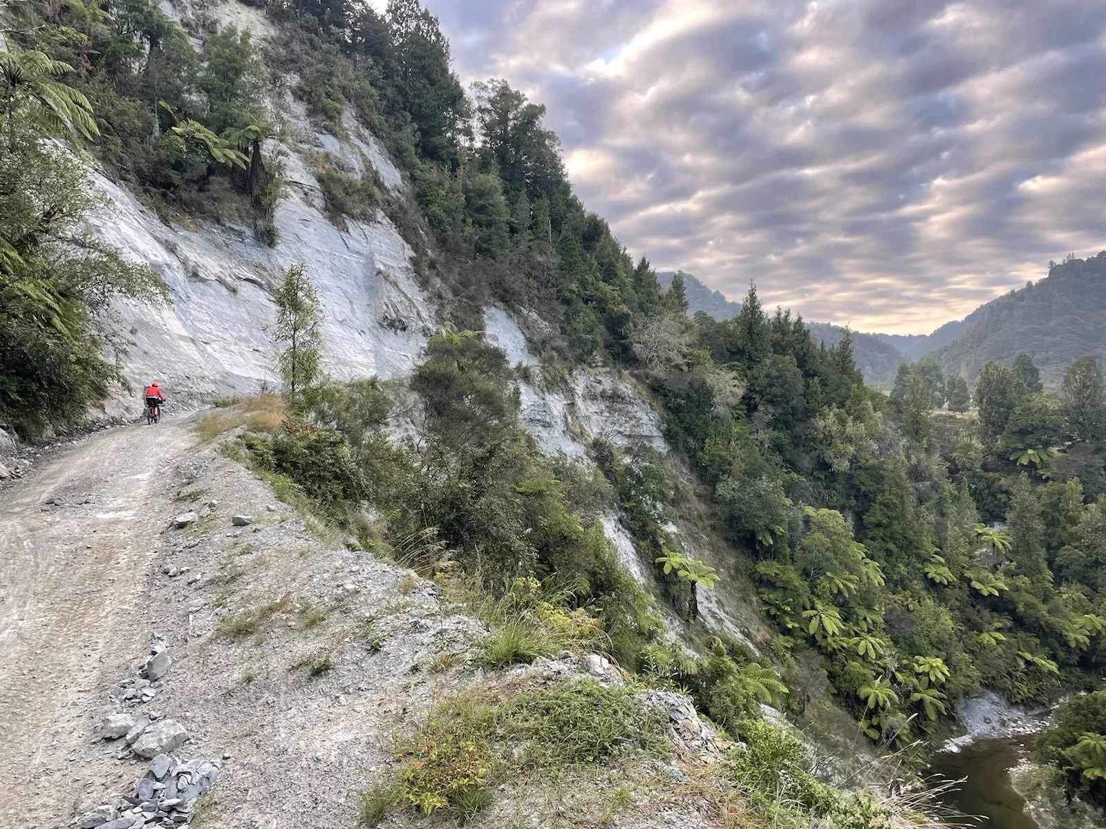 Today was a day of blue ducks, single track, mud, farm tracks, steep hill climbs, even steeper descents, lost Hansel’s, found again, bridges that went nowhere, bridges so narrow one had to wheel bikes over by standing them on the rear wheel, jet boats, kayakers, the Whanganui River, steep gorges, and at last Pipiriki.